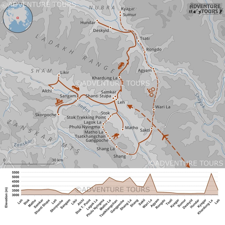 Jour 12 : Kyagar - Khardung La (5380 m) - Leh (3520 m)